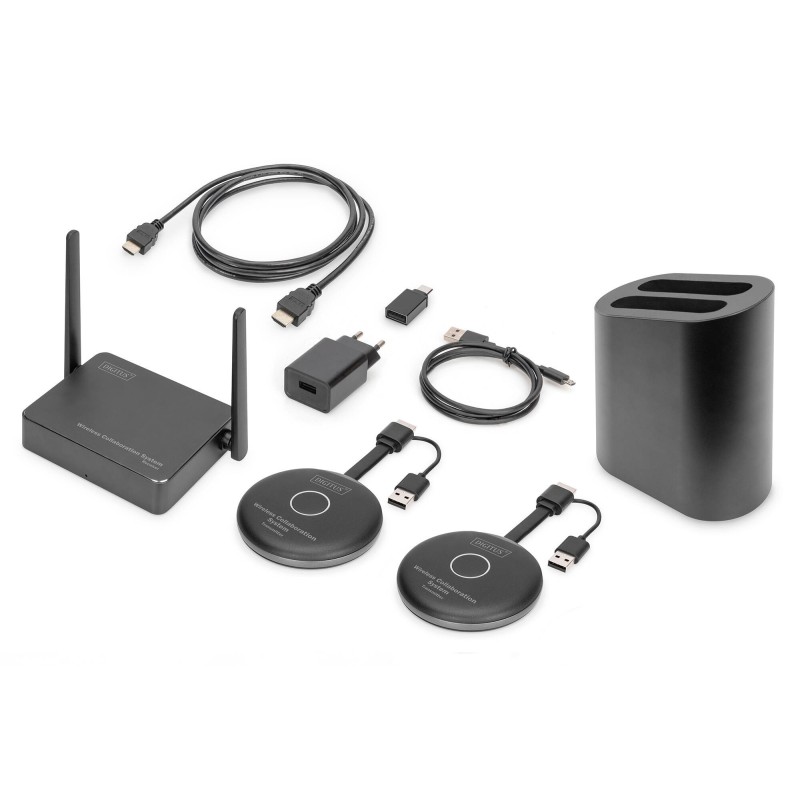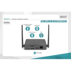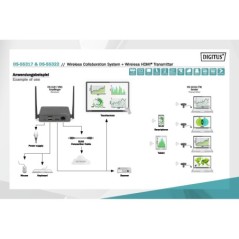 SISTEMA DI COLLABORAZIONE/PRESENTAZIONE WIRELESS - PRESENTAZIONE DAL NOTEBOOK, TABLET O DALLO SMARTPHONE CONDIVISIONE, PRESENTAZIONE & COLLABORAZIONE DA NOTEBOOK, TABLET O SMARTPHONE - DISTANZA DI TRASMISSIONE FINO A 50 M FACILE INSTALLAZIONE - NESSUN SOFTWARE O APP RICHIESTI PRESENTAZIONE CONTEMPORANEA DI FINO A 4 UTENTI NELLO SPLIT SCREEN FINO A 30 UTENTI (CONNESSIONE CONTEMPORANEA AL RICEVITORE) CONDIVISIONE DEL NOTEBOOK TRAMITE HDMI-TRANSMITTER (UNITÀ TRASMITTENTE) O TRAMITE SCHERMO WIRELESS (WINDOWS)/SINCRONIZZAZIONE DELLO SCHERMO (MACOS) CONDIVISIONE DAL TABLET/DALLO SMARTPHONE TRAMITE LA FUNZIONE SHARING/CAST (IOS/ANDROID) DEL VOSTRO DISPOSITIVO MOBILE TOUCH PANEL BACK CONTROL - SUPPORTA DISPLAY TOUCH FUNZIONE WHITEBOARD - TRASFORMA OGNI MONITOR/TV IN UNA WHITEBOARD (PORTA MOUSE/TASTIERA NEL RICEVITORE) SUPPORTA WINDOWS, MACOS, IOS, ANDROID AMPLIABILE CON TRASMETTITORI HDMI AGGIUNTIVI - DS-55322 DESCRIZIONE IL WIRELESS COLLABORATION SYSTEM DIGITUS® RIUNISCE TUTTI I VOSTRI DISPOSITIVI (NOTEBOOK, TABLET, SMARTPHONE) E OFFRE UNA SOLUZIONE DI PRESENTAZIONE BASATA SULLHARDWARE PER LA TRASMISSIONE WIRELESS DEI CONTENUTI DELLO SCHERMO PER SALE RIUNIONI/CONFERENZE.FINO A 30 UTENTI POSSONO ESSERE COLLEGATI CON UN RICEVITORE.FINO A 4 UTENTI POSSONO EFFETTUARE LA PRESENTAZIONE/COLLABORARE CONTEMPORANEAMENTE NELLO SPLIT SCREEN.I NOTEBOOK POSSONO ESSERE COLLEGATI CON IL TRASMETTITORE HDMI, E IL SET PUÒ ESSERE AMPLIATO CON TRASMETTITORI AGGIUNTIVI (DS-55322).I CONTENUTI DEL TABLET/SMARTPHONE POSSONO ESSERE CONDIVISI COMODAMENTE TRAMITE LA FUNZIONE SHARING/CAST (IOS/ANDROID) DEL VOSTRO DISPOSITIVO MOBILE; PER FARE QUESTO, COLLEGATE PRIMA IL VOSTRO DISPOSITIVO MOBILE AL RICEVITORE (SSID) TRAMITE WLAN.LA CONFIGURAZIONE DEL SISTEMA È STATA SEMPLIFICATA IL PIÙ POSSIBILE - NON SONO RICHIESTI SOFTWARE/APP AGGIUNTIVI.AUMENTATE LEFFICIENZA DELLE VOSTRE RIUNIONI, RISPARMIATE TEMPO E OTTENETE RISULTATI OTTIMALI.CONDIVIDERE - PRESENTARE - COLLABORARE. DETTAGLI TECNICI CONDIVISIONE, PRESENTAZIONE & COLLABORAZIONE DI NOTEBOOK, TABLET O SMARTPHONE FACILE INSTALLAZIONE - NESSUN SOFTWARE O APP RICHIESTI DISTANZA DI TRASMISSIONE: FINO A 50 M (VISUALE ILLIMITATA) PRESENTAZIONE CONTEMPORANEA DI FINO A 4 UTENTI NELLO SPLIT SCREEN FINO A 30 UTENTI (CONNESSIONE CONTEMPORANEA AL RICEVITORE) CONDIVISIONE DEL NOTEBOOK TRAMITE HDMI-TRANSMITTER (UNITÀ TRASMITTENTE) CONDIVISIONE DAL TABLET/DALLO SMARTPHONE TRAMITE LA FUNZIONE SHARING/CAST (IOS/ANDROID) DEL VOSTRO DISPOSITIVO MOBILE TOUCH PANEL BACK CONTROL - SUPPORTA DISPLAY TOUCH FUNZIONE WHITEBOARD - TRASFORMA OGNI MONITOR/TV IN UNA WHITEBOARD (PORTA MOUSE NEL RICEVITORE) UHD 4K/60HZ (3840X2160P) SUL LATO RICEVITORE - COLLEGAMENTO DI DISPLAY 4K SUPPORTA WINDOWS, MACOS, IOS, ANDROID SUPPORTA HDR (HIGH DYNAMIC RANGE) SISTEMA BYOD - BRING YOUR OWN DEVICE SET COSTITUITO DA 2X TX (TRASMETTITORE) E 1X RX (RICEVITORE) AMPLIABILE CON TRASMETTITORI HDMI AGGIUNTIVI - DS-55322 PORTE TRASMETTITORE: 1X CONNETTORE HDMI (FULL HD, 1080P) - COLLEGAMENTO AL NOTEBOOK, USCITA VIDEO, LUNGHEZZA DEL CAVO: 5 CM 1X CONNETTORE USB-A - COLLEGAMENTO AL NOTEBOOK, ALIMENTAZIONE, LUNGHEZZA DEL CAVO: 12 CM 1X PULSANTE DI COLLEGAMENTO - FACILE CONDIVISIONE 1X INDICATORE DI STATO LED PORTE RICEVITORE: 1X PRESA HDMI (UHD, 4K2K/60HZ) - COLLEGAMENTO AL DISPOSITIVO DI EMISSIONE 1X PRESA RJ45 (FAST ETHERNET, 10/100 MBPS) - COLLEGAMENTO ALLA RETE / INTERNET 2X USB-A, PRESA (USB 2.0) - COLLEGAMENTO DI MOUSE & TASTIERA / COLLEGAMENTO DEL DISPLAY TOUCH 1X PRESA MICRO USB - ALIMENTAZIONE (10W, 5V/2A) 1X INDICATORE DI STATO LED 2X ANTENNE RADIO STANDARD RADIO: IEEE 802.11 B/G/N/AC, 2,4G/5GHZ, 2T2R CODIFICA AES 128 BIT AUTENTICAZIONE WPA2/WPA-PSK/WPA2-PSK ALLOGGIAMENTO: TRASMETTITORE - ABS / RICEVITORE - ALLUMINIO COLORE: GRIGIO/NERO NOTE: LA DISTANZA DI TRASMISSIONE IN CASO DI VISUALE LIMITATA NON PUÒ ESSERE DETERMINATA NEL COMPLESSO E DIPENDE DALLE CONDIZIONI LOCALI PARETI, VETRO ECC RIDUCONO LA COPERTURA DEL SEGNALE O PROVOCANO PERDITE DI SEGNALE DISTANCE: 50 M