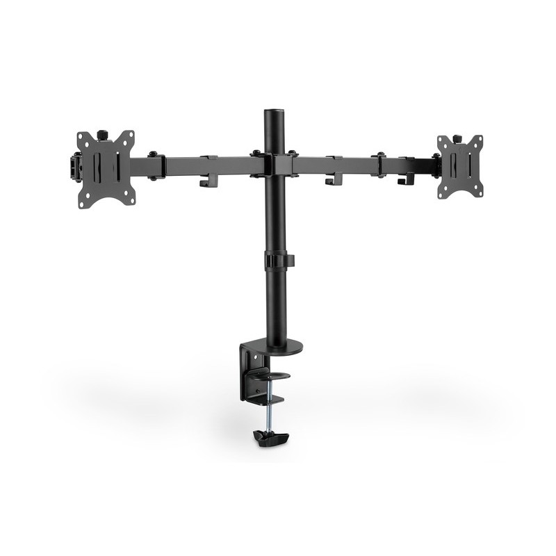 GRAZIE AL PORTA SCHERMO PER SCRIVANIA DI DIGITUS® POTRAI FISSARE AL TAVOLO DUE MONITOR DI DIMENSIONI DA 15'' A 32'' IN TUTTA COMODITÀ CON SUPPORTO A INCASTRO.LA FUNZIONE DI SGANCIO RAPIDO FACILITA INOLTRE LINSTALLAZIONE DEI MONITOR.IL SUPPORTO VESA È FACILE DA INSERIRE NELLAPPOSITA SEDE, DOVE VIENE FISSATO CON UNA VITE.QUINDI POTRAI ORIENTARE GLI SCHERMI A SECONDA DELLE TUE ESIGENZE SENZA ALCUNA DIFFICOLTÀ; INOLTRE LI POTRAI ORIENTARE, INCLINARE O PERSINO RUOTARE, AD ESEMPIO IN CASO DI USO IN VERTICALE.INFINE, LALTEZZA È REGOLABILE FINO A 31,5 CM.INOLTRE, I CAVI DEI MONITOR POSSONO ESSERE FATTI PASSARE NELLE CANALINE IN DOTAZIONE PER TENERLI IN ORDINE.FAI UN REGALO ALLA TUA SALUTE, ADEGUANDO IL MONITOR ESATTAMENTE ALLA TUA FISIONOMIA E POSIZIONE DI SEDUTA.DETTAGLI TECNICI ADATTO PER DUE MONITOR DI DIMENSIONI DA 15'' A 32'' CARICO MASSIMO: 8 KG PER CIASCUN SUPPORTO VESA FUNZIONE QUICK RELEASE: FACILE AGGANCIO DEI MONITOR NELLAPPOSITA SEDE INCLINAZIONE DEL SUPPORTO VESA / BRACCIO ORIENTABILE: 270° (3 CERNIERE DA 90° CIASCUNA) INCLINAZIONE DEL SUPPORTO VESA: 90° ROTAZIONE DEL SUPPORTO VESA: 360° DIMENSIONI VESA SUPPORTATE: 75 X 75, 100 X 100 MASSIMA REGOLAZIONE IN ALTEZZA: 31,5 CM PER TAVOLI DI SPESSORE: 10 - 85 MM MATERIALE: ACCIAIO DIMENSIONI: LARGH 89,3 X PROF 12,7 X ALT 49,8 CM PESO: 3,4 KG COLORE: NERO, OPACO DIMENSIONI DEI MONITOR: FINO A 32'' MODALITÀ DI MONTAGGIO: MONTAGGIO CON MORSETTO MONTAGGIO VESA: 75X75 MM, 100X100 MM NUMERO DI MONITOR: 2 PESO MONITOR (MAX): 8 KG