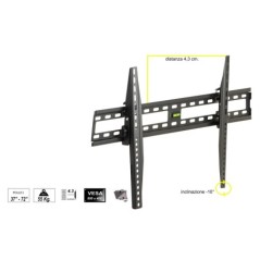 STAFFA PER INSTALLARE A PARETE MONITOR E TV LED O LCD DA 37'' A 72'', CON POSSIBILITÀ DI REGOLARE L'ANGOLO DI VISIONE VERTICALE.IN ACCIAIO, MOLTO ROBUSTA, SUPPORTA UN PESO FINO A 55 KG.PER SCHERMI STANDARD VESA 75X75, 100X100, 200X200 400X400, 600X400, 800X400 SI PUÒ REGOLARE IN VERTICALE -10° PER POSIZIONARE IL MONITOR NELLA POSIZIONE DESIDERATA LE VITI E I TASSELLI PER LINSTALLAZIONE SONO INCLUSI, L'INSTALLAZIONE È SEMPLICE.PROFILO MOLTO BASSO, 4,3 CM, SPORGE POCHISSIMO DAL MURO PUR MANTENENDO LA CORRETTA AERAZIONE NELLA PARTE POSTERIORE DELLA TV.