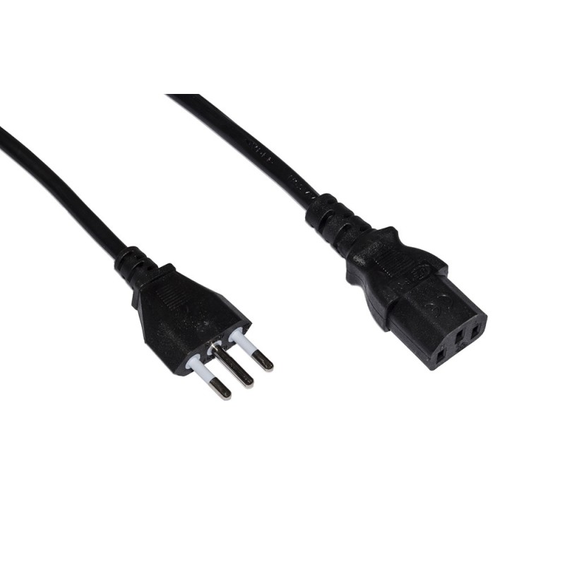 ''NORMALI CAVI DI ALIMENTAZIONE DALLA PRESA A MURO AL DISPOSITIVO, AD ESEMPIO PER COMPUTER, STAMPANTI, PERSONAL COMPUTER E ALTRE PERIFERICHE.CONNETTORE 1: SPINA ITALIANA 10A TRIPOLARE CEI 23-50 CONNETTORE 2: PRESA IEC 320 C13 VDE FEMMINA.SEZIONE DEI CONDUTTORI 0,75 MMNORMA DEL CAVO: H05VV-F3G CARICO DI CORRENTE: 250V/10A COLORE CAVO: NERO COLORE CONNETTORI: NERO SUPERFICIE DI CONTATTO: NICHEL LUNGHEZZA: 5 M