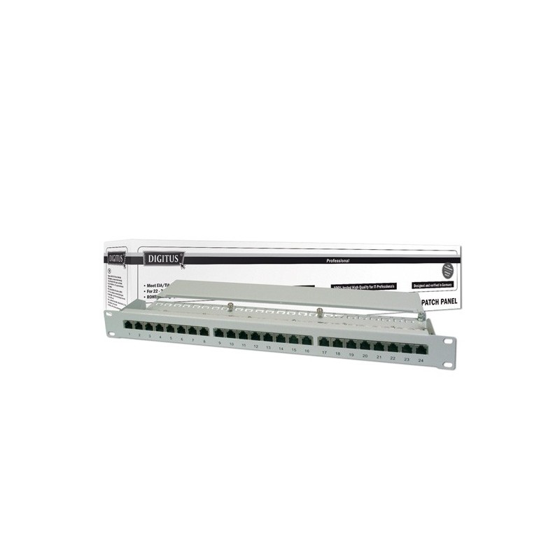 IL PANNELLO PATCH SCHERMATO CAT 5E DI DIGITUS® È DISPONIBILE NELLE VERSIONI 16 O 24 PORTE.È CONFORME ALLE NORME ISO/IEC 11801 E EN 50173.L'ALLOGGIAMENTO È IN ACCIAIO ZINCATO LAMINATO A FREDDO CON UNO SPESSORE DI 1,5 MM E QUINDI SI ADATTA PERFETTAMENTE ALL'INSTALLAZIONE SU RACK DA 19''.DETTAGLI TECNICI PROPRIETÀ DI TRASFERIMENTO: CATEGORIA 5E CAMPI DI APPLICAZIONE: FINO A 100 MHZ, 10/100BASE-T, 1GBASE-T NORME: ISO/IEC 11801 2ND ED., EN 50173-1, EIA/TIA 568-C CARATTERISTICHE GENERALI: ADATTO PER INSTALLAZIONE IN ARMADI DA 483 MM (19'') PRESE RJ45, 8P8C INSTALLAZIONE DEL CAVO ATTRAVERSO MODULI LSA, CODICE DEL COLORE SECONDO EIA/TIA 568 A & B FISSAGGIO DEL CAVO ATTRAVERSO FASCETTE MESSA A TERRA CENTRALE COLLEGAMENTO DELLO SCHERMO A 360° PROPRIETÀ MECCANICHE: MATERIALE DELL'ALLOGGIAMENTO: ACCIAIO LAMINATO A FREDDO, ZINCATO, SPESSORE 1,5 MM AI SENSI DI EN1.4301, UNS S30400, AISI 304 E LMSAD110 MATERIALE PRESA RJ45: ABS UL 94V-0 CONTATTO PRESA RJ45: BRONZO FOSFOROSO VERNICIATO, CONTATTO DORATO 0,5 Μ SCHERMATURA RJ-45: BRONZO NICHELATO ISOLANTE CONNETTORE: KRONE LSA+, UL 94V-2, BRONZO FOSFOROSO GALVANIZZATO MASSA DEL CAVO: NON INCLUSO NELLA CONFEZIONE CIRCUITO STAMPATO: FR4, UL 94V-0 PROPRIETÀ FISICHE: FORZA DI INSERIMENTO: 30N MAX (IEC 60603-7-5) CARICO DI TRAZIONE: 7,7 KG TRA PRESA E SPINA TEMPERATURA DI ESERCIZIO: -20° C BIS +70 °C (ISO/IEC 11801, EN 50173-1, ANSI/TIA/EIA 568 C) CICLO PRESA: > 750 AI SENSI DI ISO/IEC 11801, IEC 60603-7-5 TERMINALE: > 200 AI SENSI DI ISO/IEC 11801, IEC 60603-7-5 SUPPORTO DI BASE: 22-26 AWG CONDUTTORE INTRECCIATO E MASSIVO RESISTENZA ALL'ISOLAMENTO: > 500 MOHM RESISTENZA DEL CONTATTO: < 20 MILLIOHM RIGIDITÀ DIELETTRICA: 1000 VDC (CONTATTO/CONTATTO), 1500 VDC (CONTATTO/MASSA) COLORE: GRIGIO CHIARO, RAL 7035 PORTE: 24 UNITÀ: 1 CATEGORIA: CAT 5E