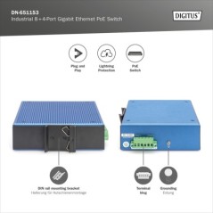DESCRIZIONEIL DN-651153 È UN ROBUSTO SWITCH INDUSTRIALE GIGABIT ETHERNET POE A 8+ 4 PORTE PER AMBIENTI DIFFICILI.CON PRESTAZIONI WIRE-SPEED NON BLOCCANTI, OFFRE 8X PORTE 10/100/1000 BASE-TX RJ45 (FINO 30 W POE CIASCUNA) + 4X 1000 BASE-FX.LALLOGGIAMENTO IP40 CON ALIMENTAZIONE RIDONDANTE È IDEALE PER IL MONITORAGGIO, LA GESTIONE DEL CONTROLLO E I SERVIZI WIRELESS CON TEMPERATURE DA -40? A 80?.DETTAGLI TECNICI SUPPORTA IL CONTROLLO DI FLUSSO IEEE802.3X E BACKPRESSURE SUPPORTA LA TECNOLOGIA STORE-AND-FORWARD PER UNA TRASMISSIONE DATI OTTIMIZZATA RILEVAMENTO/IMPOSTAZIONE AUTOMATICA DI VELOCITÀ E HALF/FULL DUPLEX 4 PORTE POE CON POTENZA FINO A 30 W LARGHEZZA DI BANDA: 52 GBPS CACHE DEL PACCHETTO: 4.1 MBIT DIMENSIONI DI INOLTRO PACCHETTO: 38.7 MBPS DIMENSIONI DELLA TABELLA INDIRIZZI MAC: 8K FREQUENZA JUMBO FRAME: 9000 BYTE PROTEZIONE ESD: 6 KV (DC) PROTEZIONE EFT: 6 KV (DC) ALLOGGIAMENTO IN METALLO, IP40 4 KV PROTEZIONE DAI FULMINI E DALLA SOVRATENSIONE ADATTO PER MONTAGGIO SU GUIDA DIN (TOP-HAT-RAIL) ALIMENTAZIONE RIDONDANTE CON FUNZIONE DI PROTEZIONE DALLINVERSIONE DI POLARITÀ ALIMENTAZIONE: DA 48 A 57 V CONSUMO DI ENERGIA: <10 W V-LAN: NO CONNESSIONE A MORSETTO RIMOVIBILE CLASSE DI PROTEZIONE: IP40 DIMENSIONI: 143,7 X 125 X 47,7 MM PESO: 0,76 KG TEMPERATURA OPERATIVA: DA -40 A 80°C TEMPERATURA DI CONSERVAZIONE: DA -40 A 80°C UMIDITÀ DELLARIA: DA 5% A 95% (NON CONDENSA) MTBF: 300.000 NUMERO DI PORTE: 8 STANDARD POE: IEEE802.3AF (POE) VELOCITÀ ETHERNET: GIGABIT USO INDUSTRIALE: SÌ