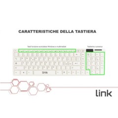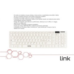 MOUSE E TASTIERA WIRELESS CON COPRITASTIERA KIT COMBO CON TASTIERA WIRELESS CON SCHEMA TASTI ITALIANO 104 TASTI E MOUSE WIRELESS, COLORE BIANCO, PER PERSONAL COMPUTER O NOTEBOOK, È INCLUSO ANCHE UN COPRITASTIERA REMOVIBILE IN LATTICE PER USO IN AMBIENTI POLVEROSI O PER EVITARE DI SPORCARE LA TASTIERA.SI PUÒ QUINDI USARE CON O SENZA COPRITASTIERA.MOUSE E TASTIERA SENZA FILI, SI PUÒ QUINDI UTILIZZARE SENZA L'IMPACCIO DEI CAVI. CON RICEVITORE MINI USB, DI DIMENSIONI RIDOTTE, SI PUÒ LASCIARE INSERITO NEL NOTEBOOK SENZA RISCHIO DI DANNEGGIARLO DURANTE IL TRASPORTO DESIGN SLIM ELEGANTE, TASTI SILENZIOSI A PROFILO BASSO, TASTIERA NUMERICA DI DIMENSIONI STANDARD, IDEALE PER USO IN UFFICIO O IN VIAGGIO, GRAZIE AL SUO DESIGN SLIM.Ê SUFFICIENTE COLLEGARE IL RICEVITORE NELLA PORTA USB A UN PERSONAL COMPUTER DESKTOP O A UN NOTEBOOK ED È TUTTO PRONTO PER L'UTILIZZO.COLORE BIANCO.CON TECNOLOGIA DI RISPARMIO ENERGETICO.MOUSE CON 3 TASTI, 1000/1600 DPI E ROTELLA DI SCORRIMENTO SCHERMATE.IL RICEVITORE HA UNA PORTATA DI 10 METRI E UNA FREQUENZA RADIO 2,4 GHZ.FUNZIONAMENTO CON 1 PILA MINISTILO PER IL MOUSE E 2 PER LA TASTIERA (NON INCLUSE). TECNOLOGIA WIRELESS MIGLIORATA, 2.4 GHZ CON PORTATA FINO A 10 METRI E MENO POSSIBILITÀ DI INTERFERENZE DA DISPOSITIVI VICINI. COMPATIBILE CON WINDOWS E MAC MISURE TASTIERA 39X11,5 CM LA CONFEZIONE INCLUDE 1 TASTIERA SLIM 1 MINI MOUSE OTTICO 1 MINI RICEVITORE USB